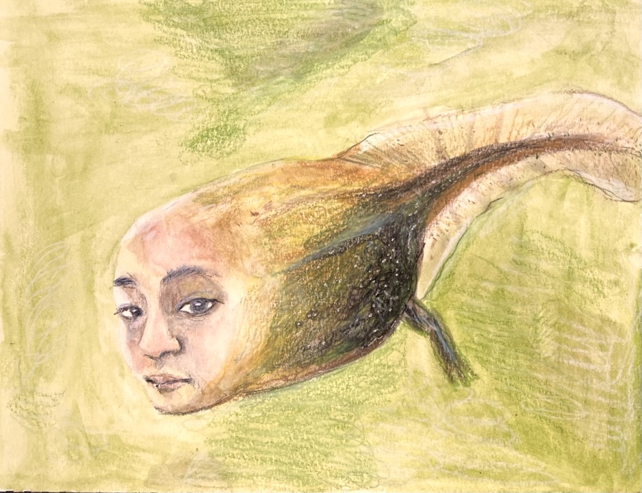 Title: Self Portrait with Tadpole Body (Fish with Human Face Collection-4)